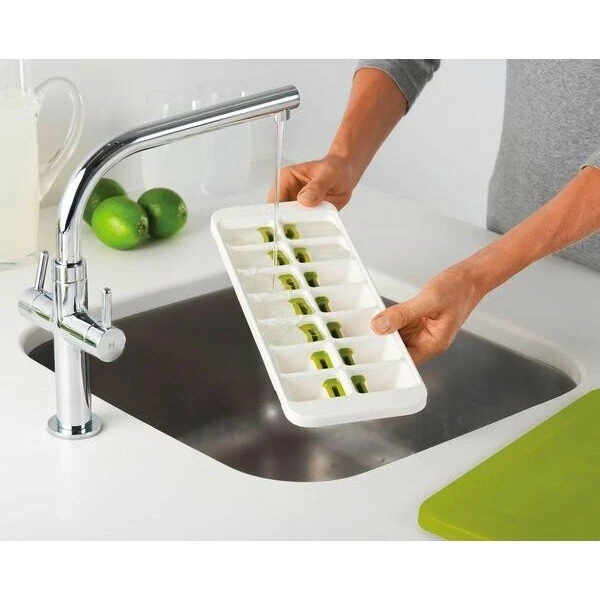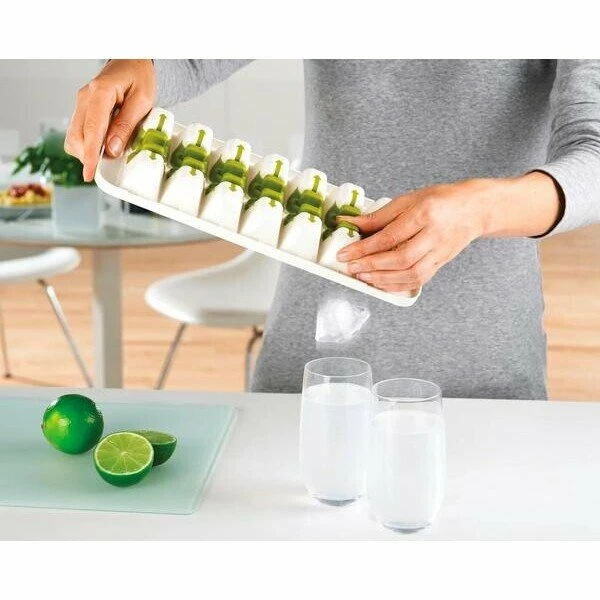 Eiswürfel herzustellen ist eigentlich kinderleicht. Sie aber aus dem Eiswürfelbereiter in Gläser zu füllen, gestaltet sich häufig schwierig. Der Eiswürfelbereiter von Joseph Joseph mit dem besonderen Klickmechanismus ist für diesen Einsatz bestens ausgestattet. Die gewünschten Eiswürfel lassen sich dosieren, ohne dass die anderen aus dem Eiswürfelbereiter herausfallen können. Zudem bewahrt der Deckel davor, dass kein Wasser im Gefrierfach verschüttet wird – eine saubere und praktische Sache also!