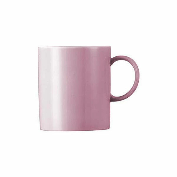 Innen ist die Tasse schlicht in Weiß gehalten, während sie außen in zartem Rosa leuchtet.